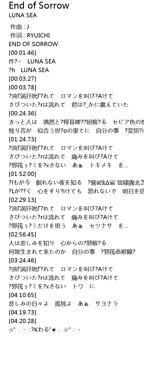 | [04:20.88] | ☆°.・∴?Kわる°★. ☆° ∴・ |