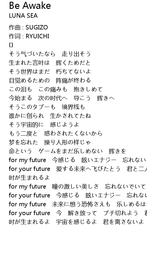| for my future 未来に想う恐怖さえも 乐しめるはずさ | |