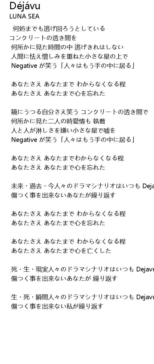 | 未来・過去・今人々のドラマシナリオはいつも Dejavu | |