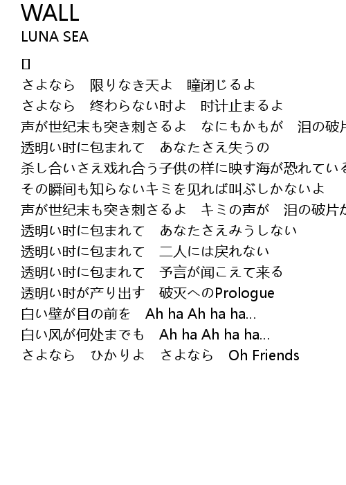 | 声が世纪末も突き刺さるよ なにもかもが 泪の破片が | |