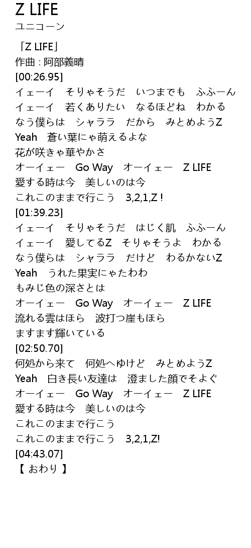 | [04:07.44] | オーイェー Go Way オーイェー Z LIFE |