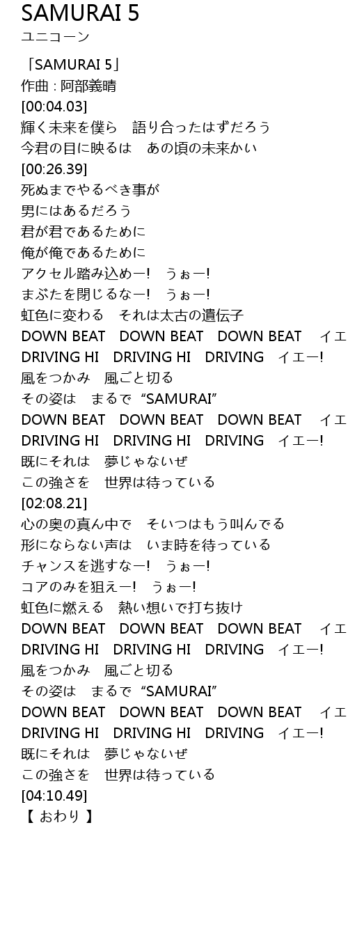 | [03:22.87] | DOWN BEAT DOWN BEAT DOWN BEAT ! |