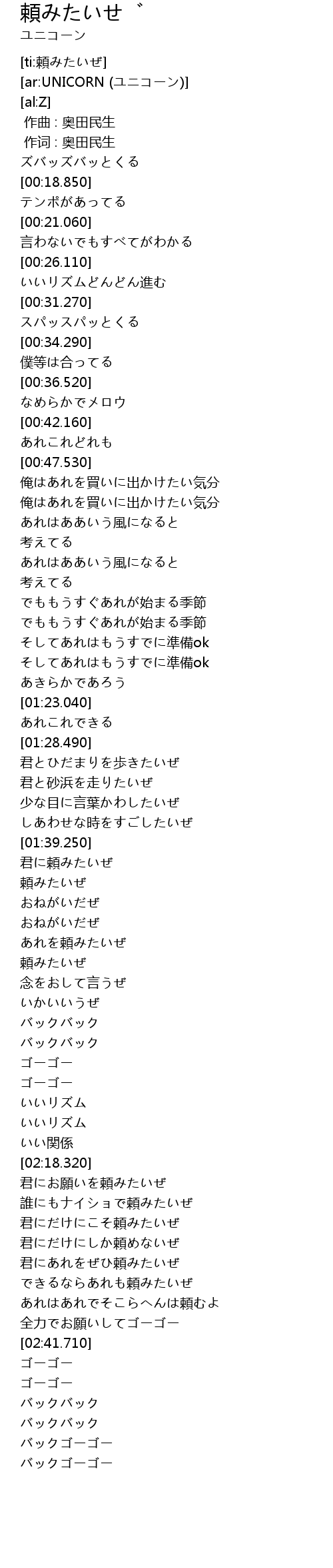 | [ti:頼みたいぜ] | |