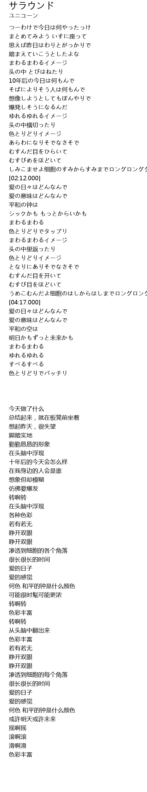 | [04:11.000] | うめこむんだよ细胞のはしからはしまでロングロングタイム |