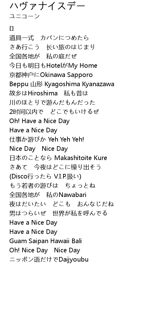 | Song | ハヴァナイスデー |