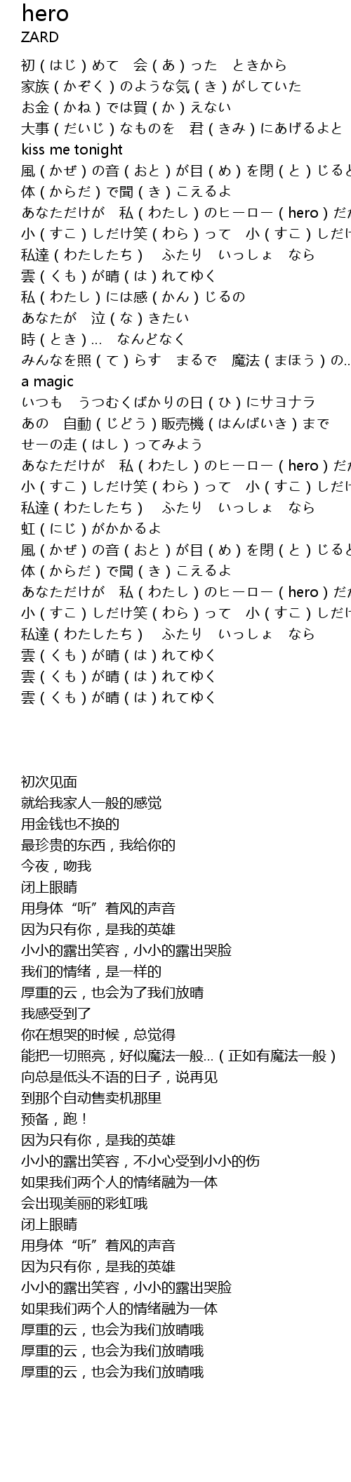 | [02:43.58] | あなただけが 私(わたし)のヒーロー(hero)だから |