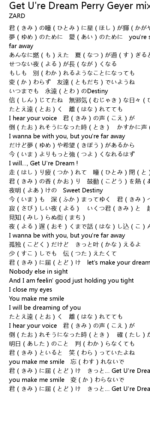 | [04:24.27] | 君(きみ)に届(とど)け きっと… Get U're Dream ! |