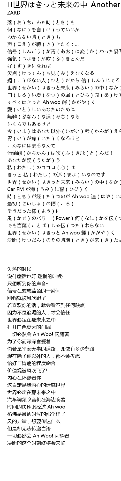 | [02:19.24] | 世界(せかい)はきっと未来(みらい)の中(なか) |