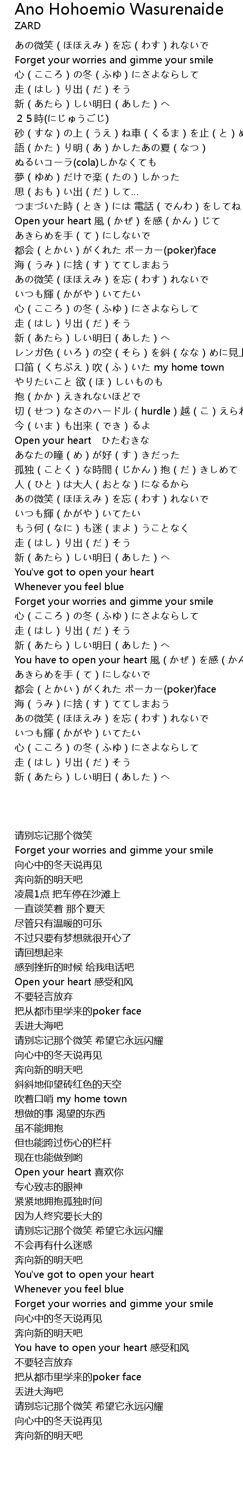 | [00:00.59] | あの微笑(ほほえみ)を忘(わす)れないで |