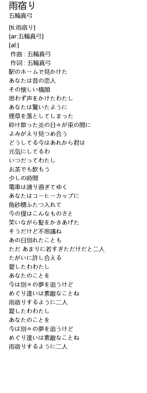 | [00:00.00] | 作曲 : 五輪真弓 |
