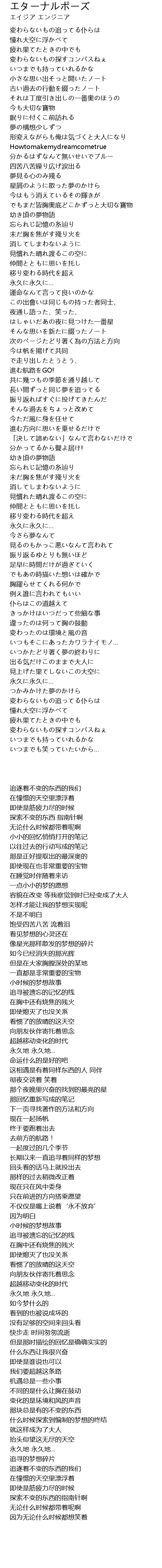 | [03:35.320] | いつかたどり著く夢の終わりに |