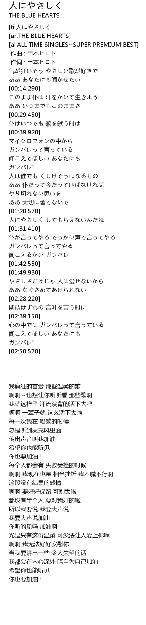 | [00:00.283] | 作词 : 甲本ヒロト |