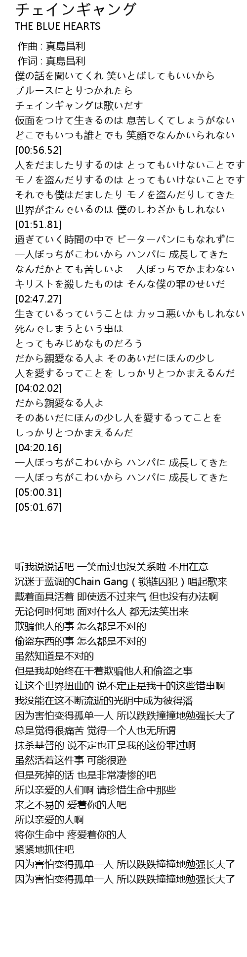 | [00:28.07] | ブルースにとりつかれたら チェインギャングは歌いだす |
