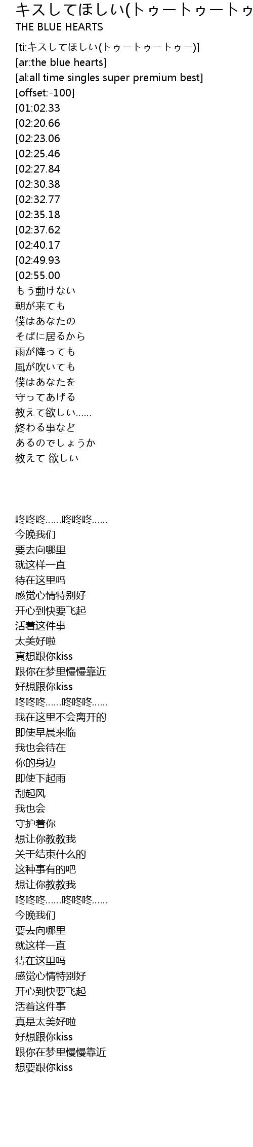 | [00:42.77][02:40.17] | キスして欲しい…… |