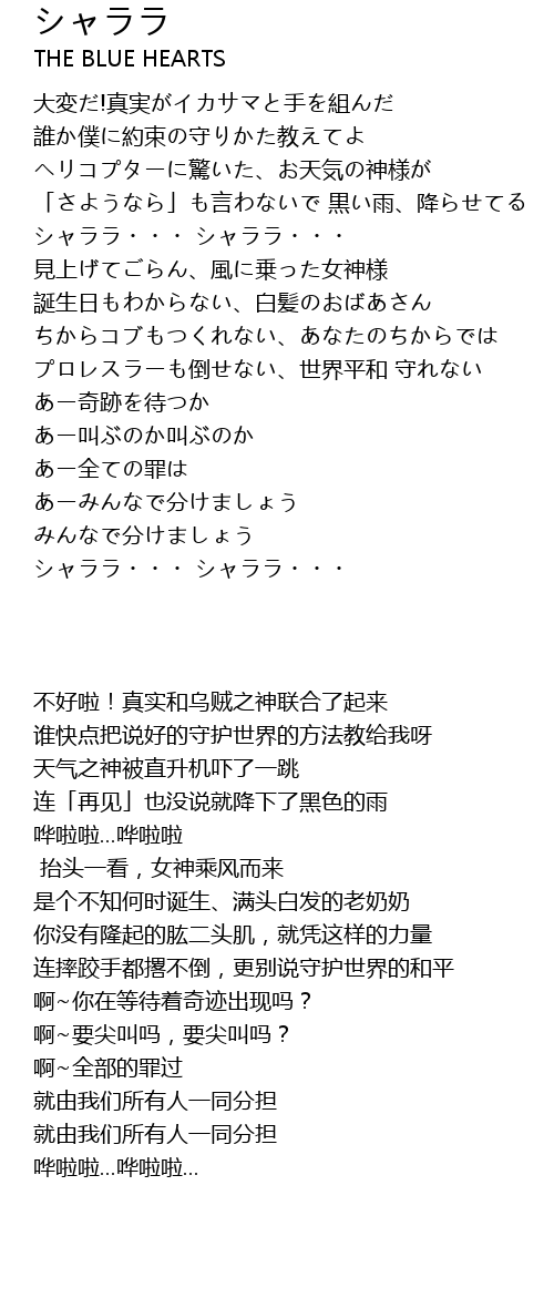 | [00:43.000] | シャララ・・・ シャララ・・・ |