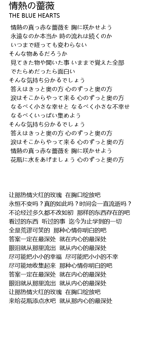 | [00:00.335] | 情熱の真っ赤な薔薇を 胸に咲かせよう |