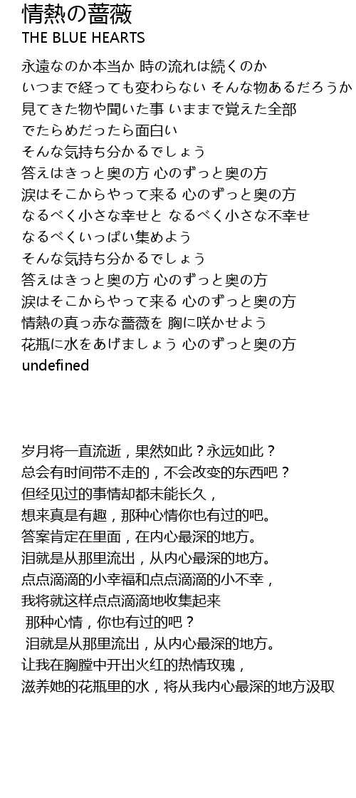 | [02:17.10] | 情熱の真っ赤な薔薇を 胸に咲かせよう |