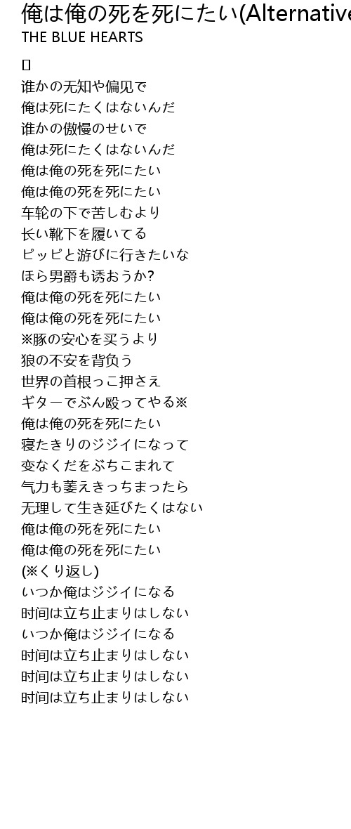 | Song | 俺は俺の死を死にたい(Alternative version) |