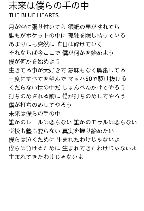 | 誰もがポケットの中に 孤独を隠し持っている | |