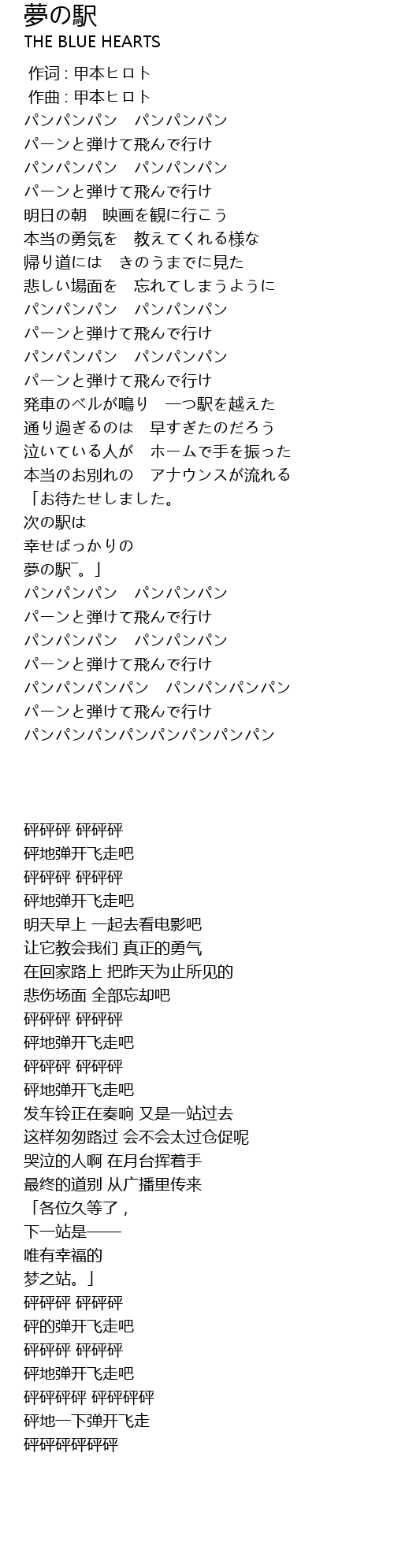 | [00:00.000] | 作词 : 甲本ヒロト |