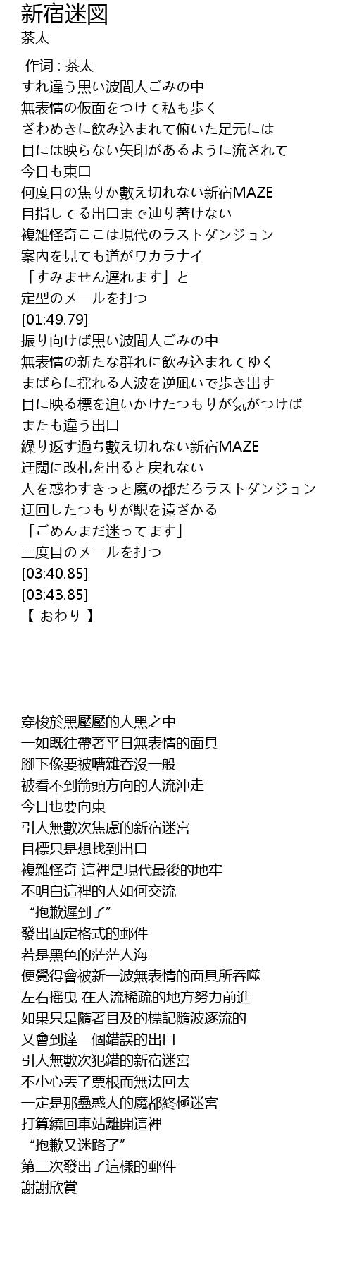 | [03:05.34] | 繰り返す過ち數え切れない新宿MAZE |