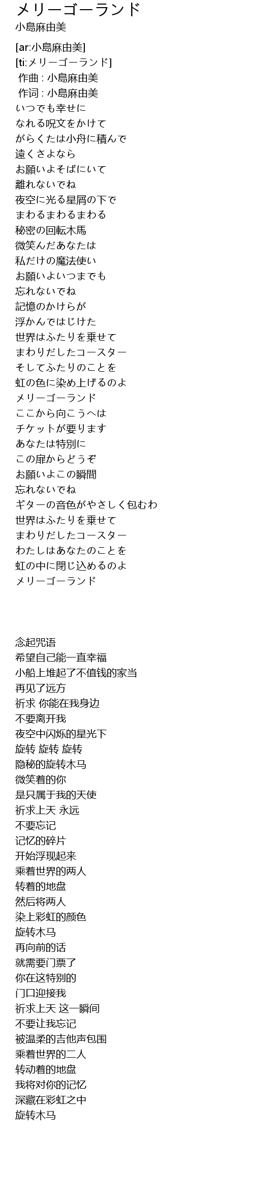 | [00:01.00] | 作词 : 小島麻由美 |