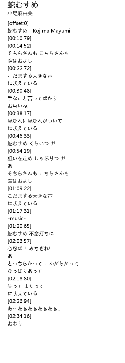 | [00:00.35] | 蛇むすめ - Kojima Mayumi |
