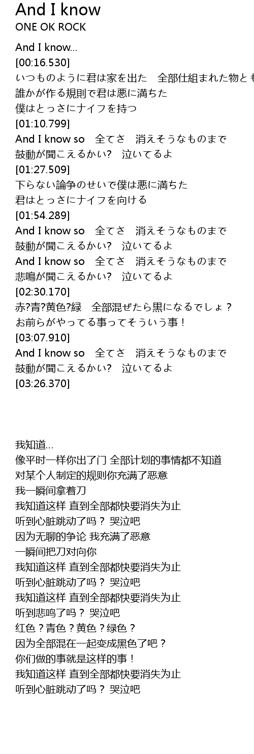 | [00:56.339] | 誰かが作る規則で君は悪に満ちた |