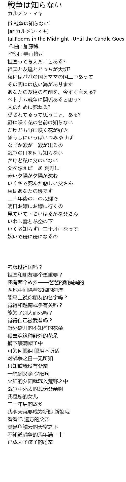 | [01:45.04] | zhàn zhēng rì hé zhī |