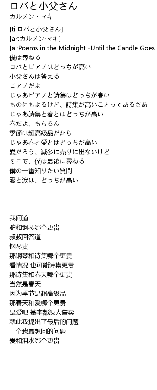 | [00:48.55] | じゃあ詩集と春とはどっちが高い |