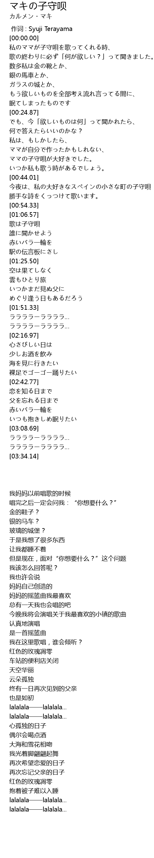 | [00:37.99] | ママの子守唄が大好きでした。 |