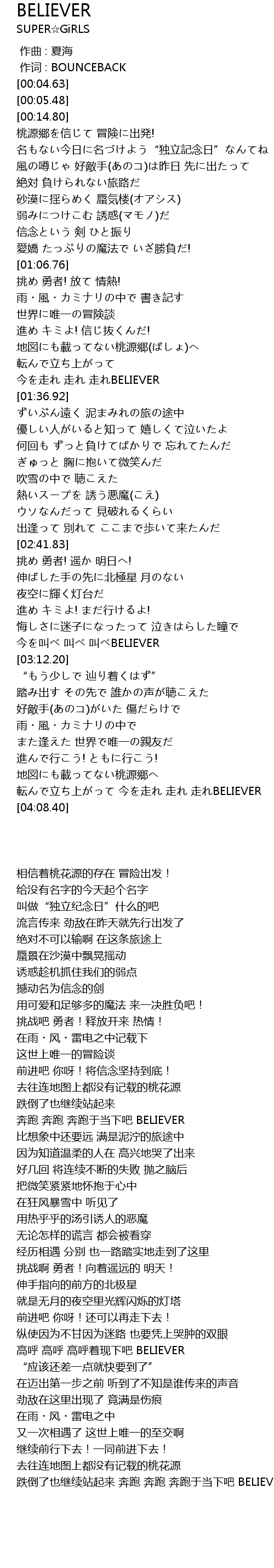 | [03:04.56] | jin jiao jiao jiao BELIEVER |