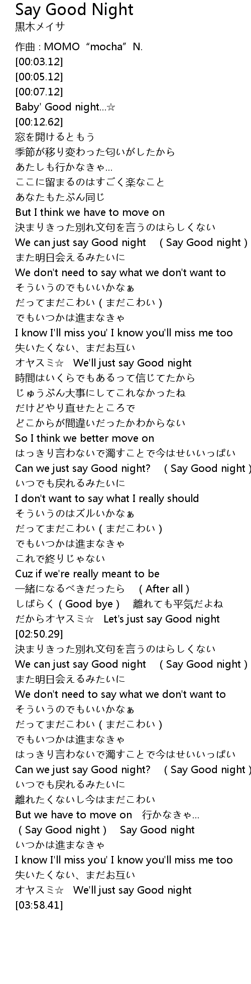 | [02:58.70] | We can just say Good night Say Good night |