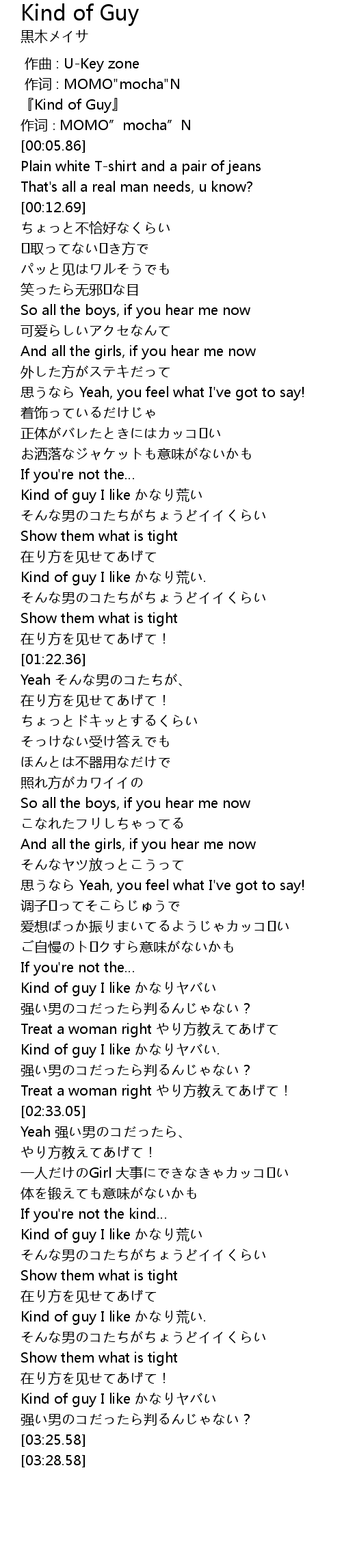 | [02:56.31] | Kind of guy I like かなり荒い |