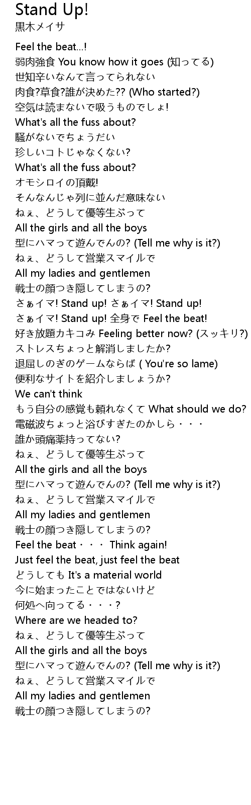 | ! Stand up! quán shēn Feel the beat! | |