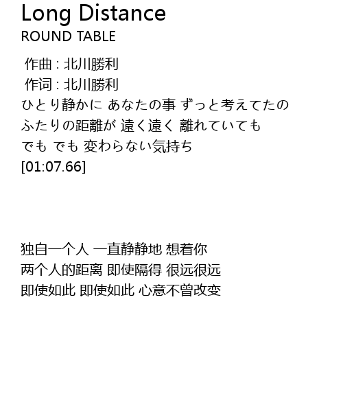 | [00:29.41] | ふたりの距離が 遠く遠く 離れていても |