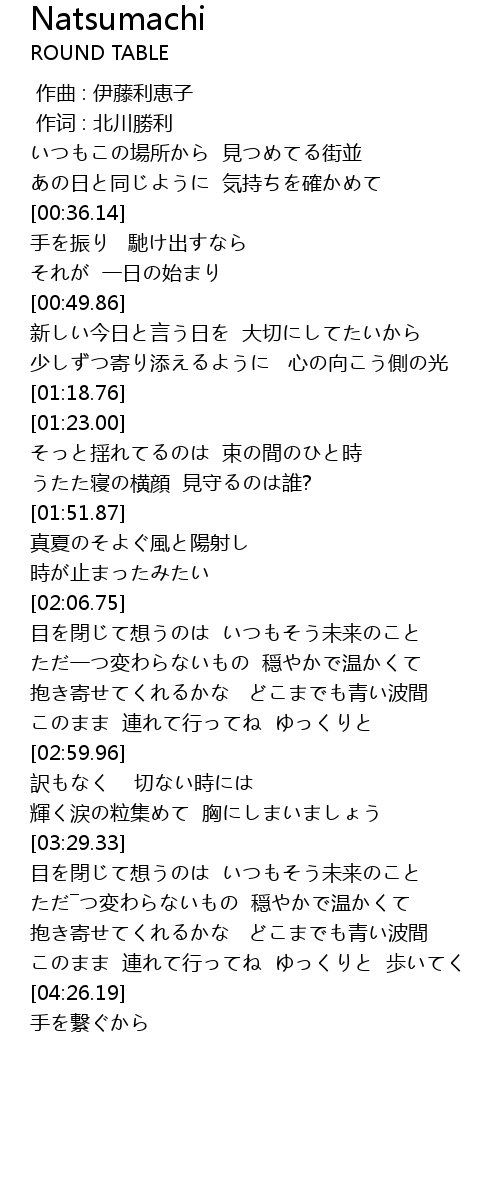 | [00:00.00] | 作曲 : 伊藤利恵子 |