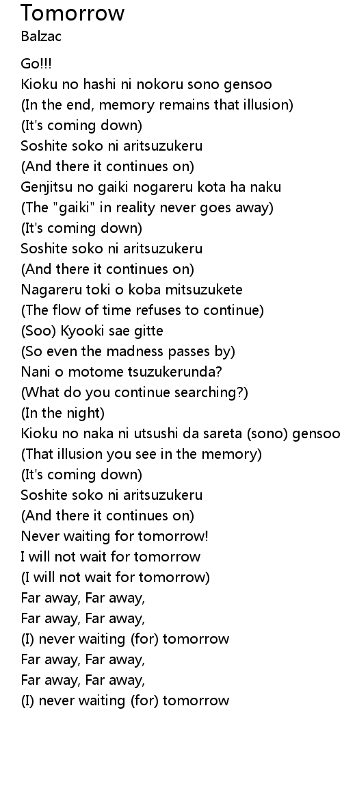 (I) never waiting (for) tomorrow |