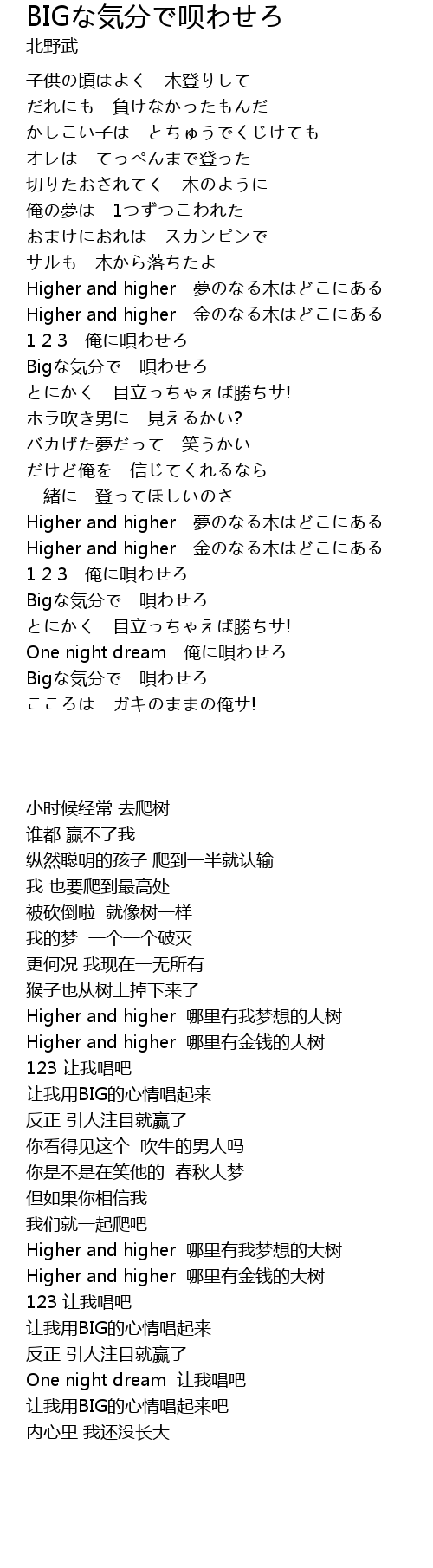 | [02:49.12] | Higher and higher 金のなる木はどこにある |