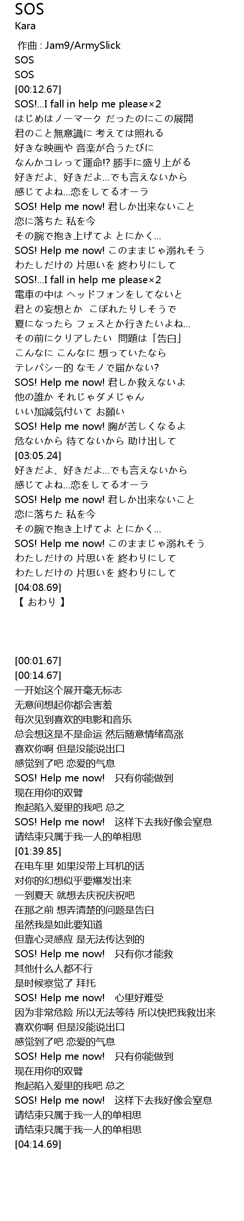 | [00:14.67] | SOS!...I fall in help me please×2 |