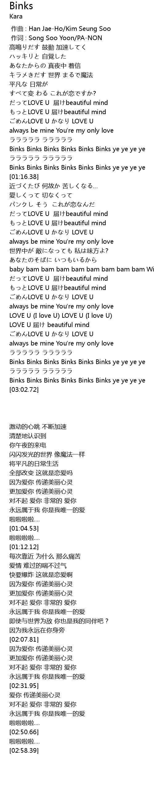 | [01:12.12] | Binks Binks Binks Binks Binks Binks ye ye ye ye |