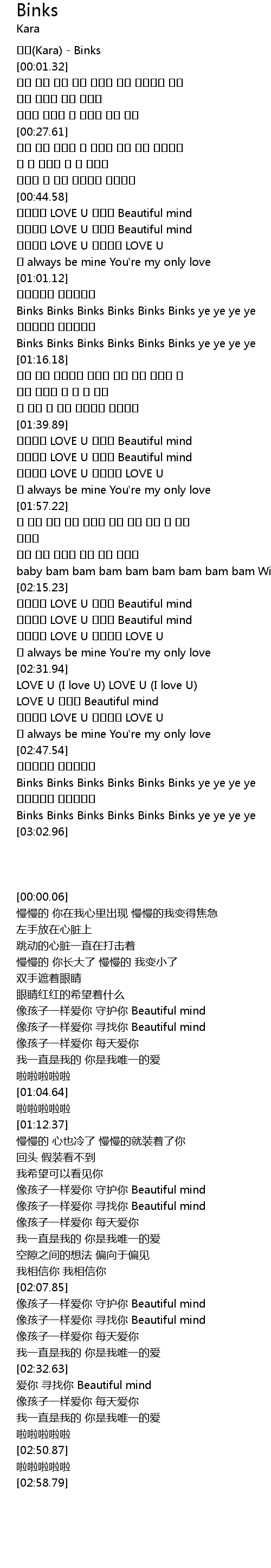 | [00:44.87] | 아이같이 LOVE U 지켜줘 Beautiful mind |