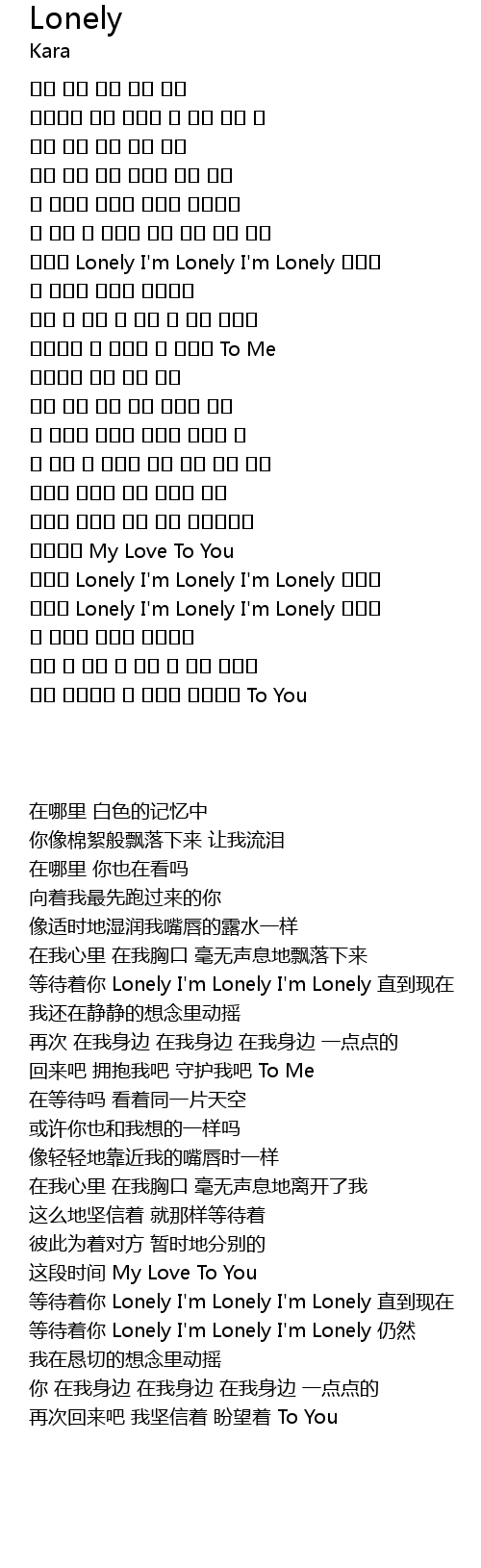| [02:35.100] | 기다려 Lonely I'm Lonely I'm Lonely 여전히 |