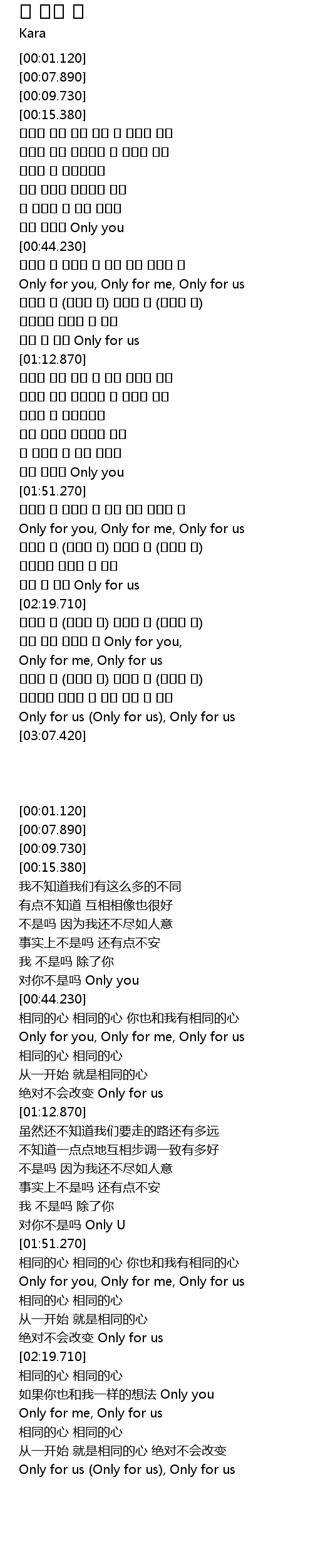 | [02:34.110] | 너도 나와 똑같은 맘 Only for you, |
