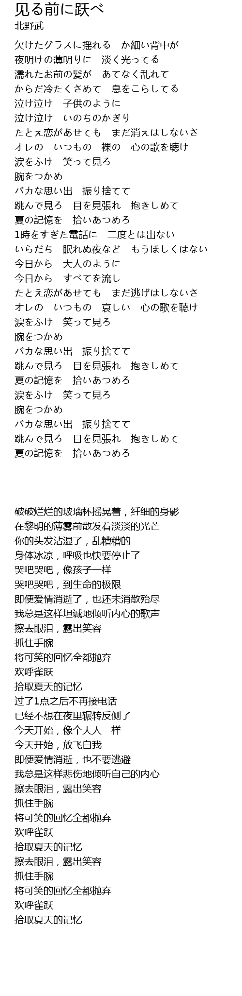 | Song | 见る前に跃べ |