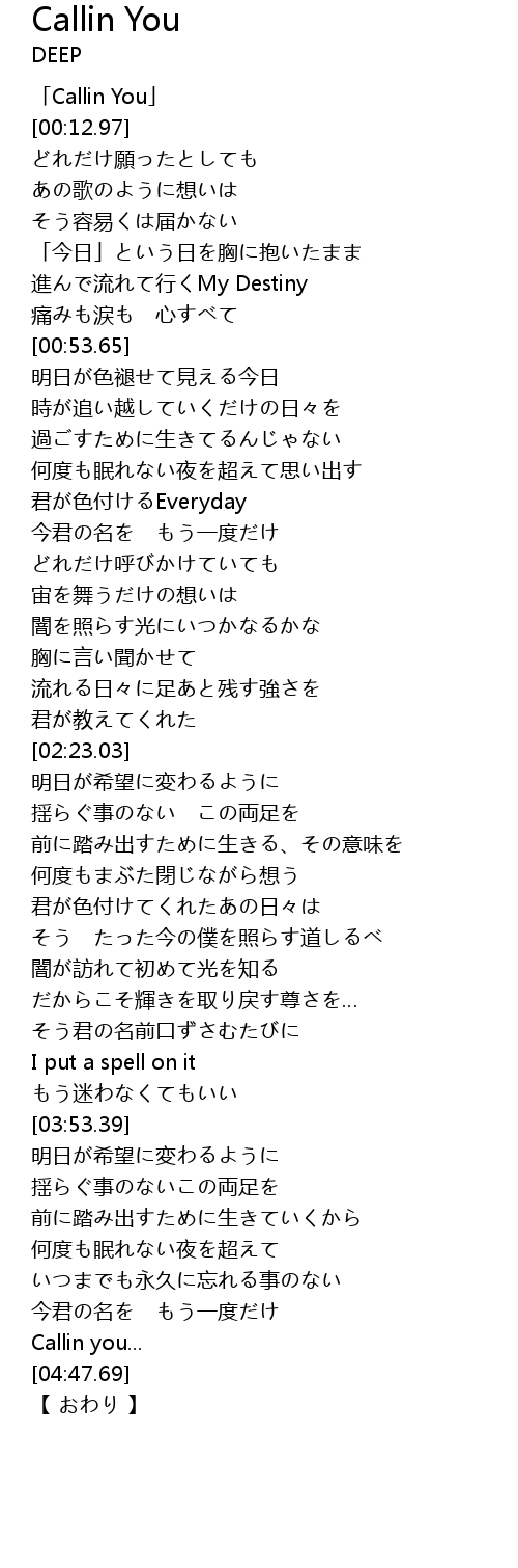 | [04:19.11] | 何度も眠れない夜を超えて |