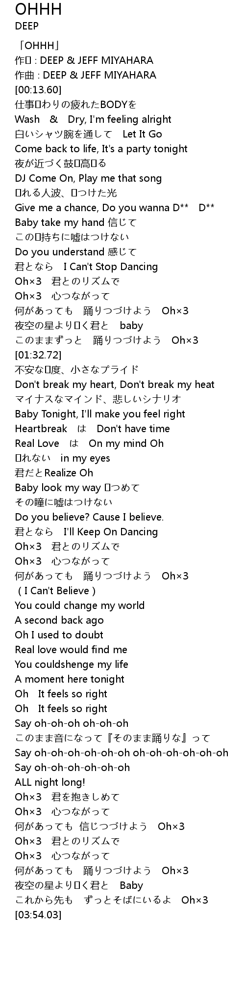 | [03:00.01] | Say oh-oh-oh-oh-oh-oh oh-oh-oh-oh-oh-oh |