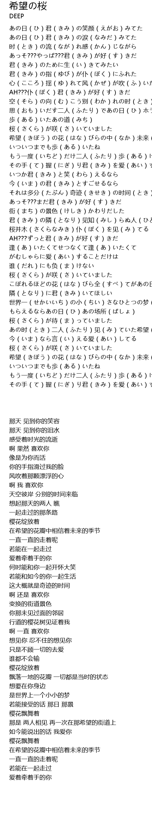 | [03:58.93] | 桜(さくら)が咲(さ)いていました |