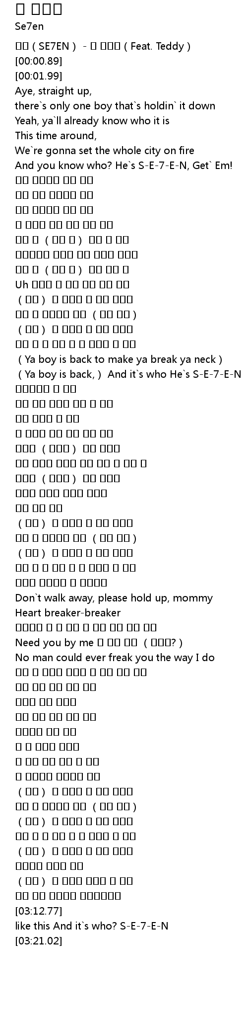 | [00:00.01] | 세븐(SE7EN) - 난 알아요(Feat. Teddy) |
