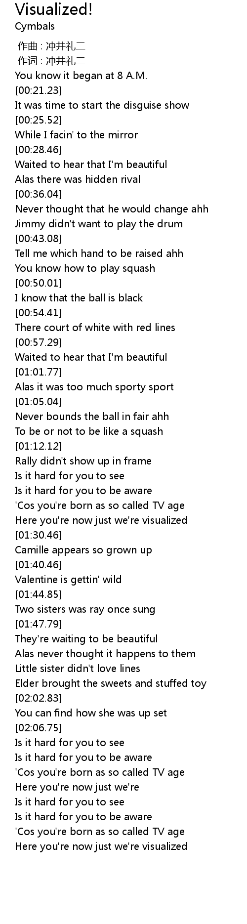 | [01:23.91] | 'Cos you're born as so called TV age |